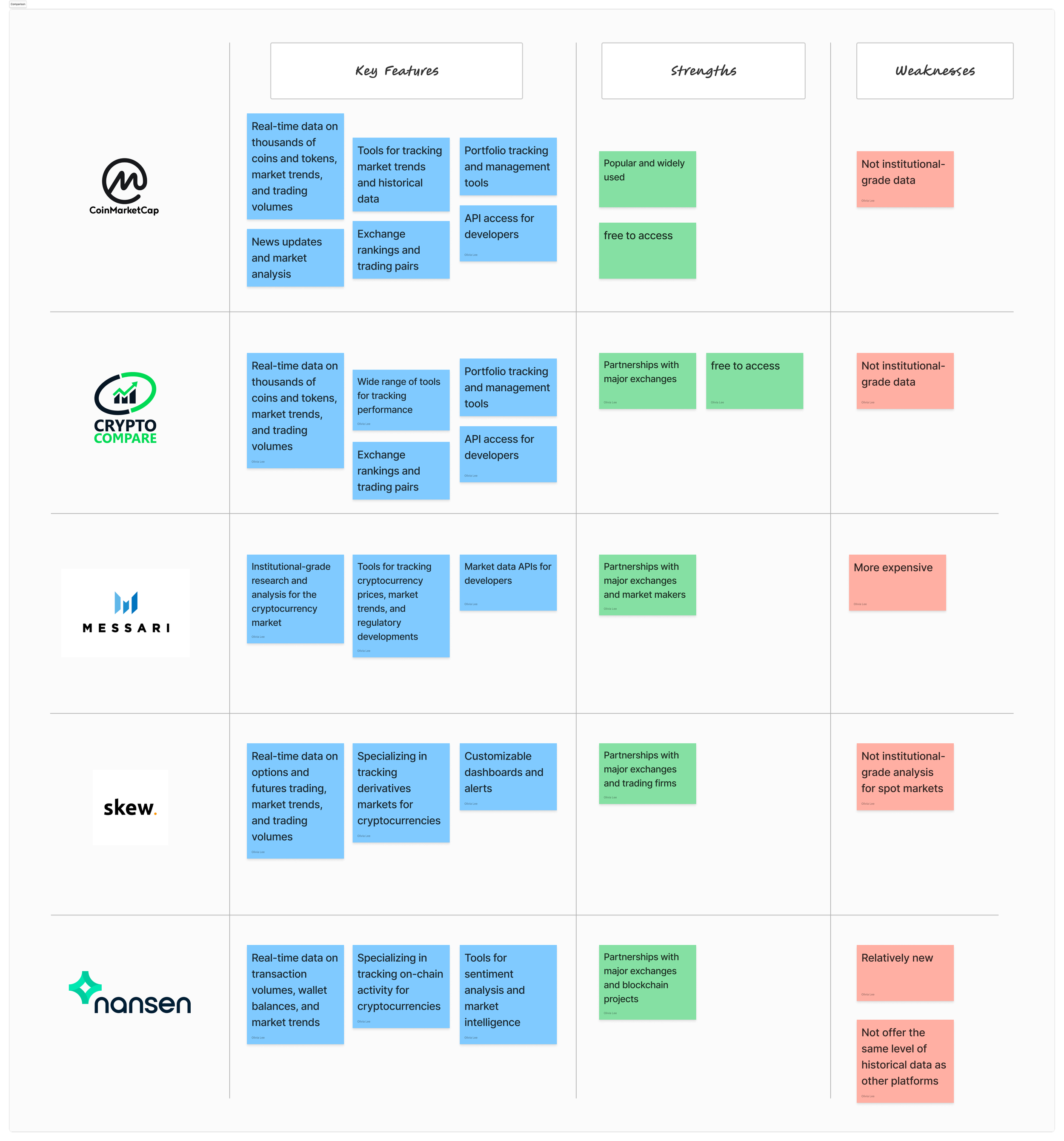 Our comprehensive competitor analysis aimed to identify key features, strengths, and weaknesses from each platform, providing valuable insights to benchmark against as we strive to deliver an exceptional solution.